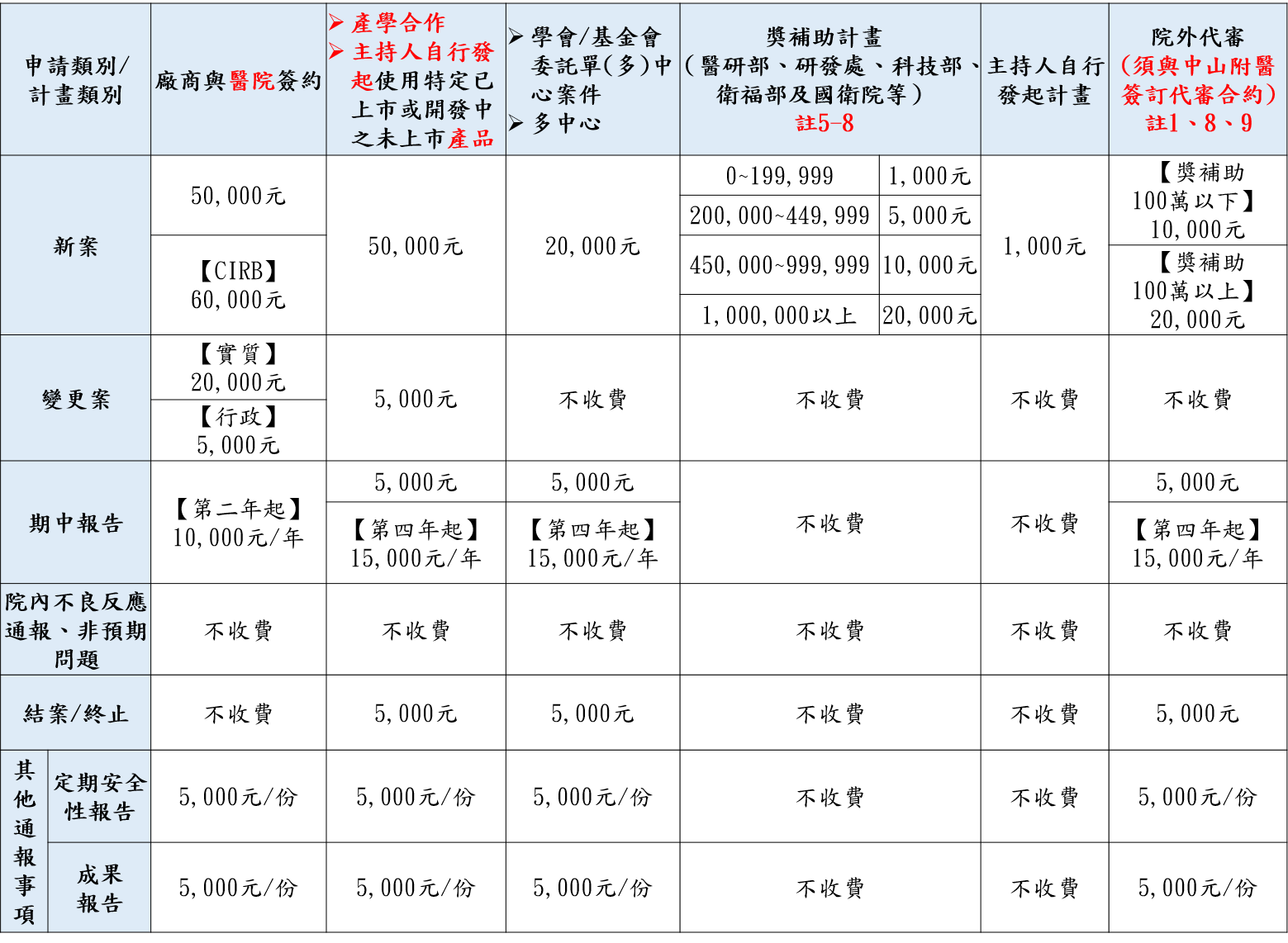 ※ 中山附醫醫研部:採院內扣款,不需繳費,請編列足夠審查費。