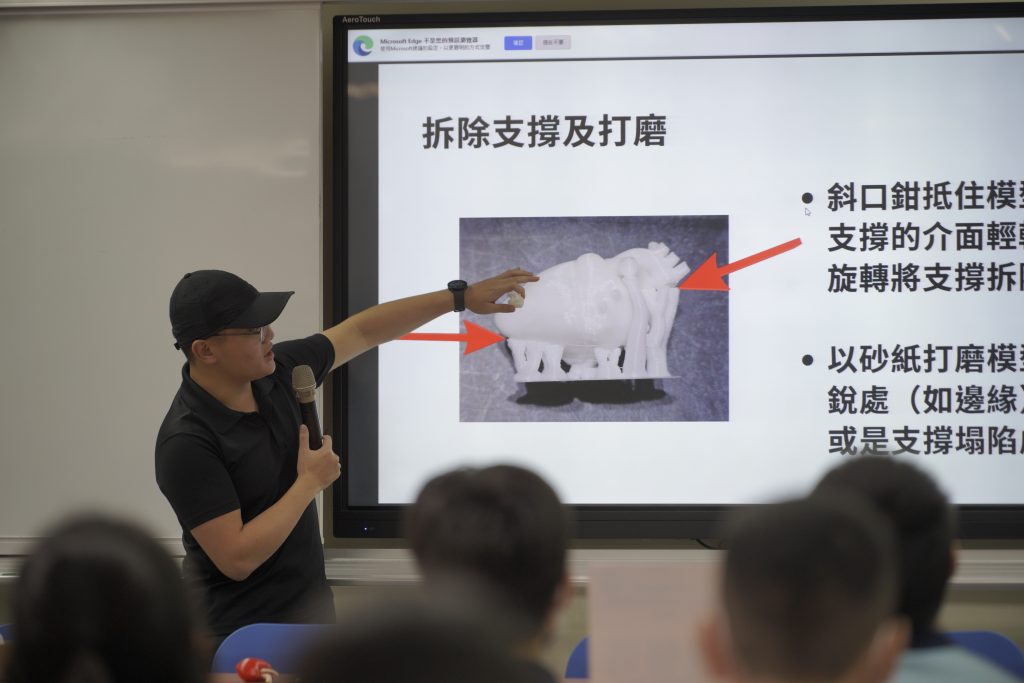 自煦科技服務創辦人劉秉勳 講解3D 列印器官的起源及製作過程,學生們透過直接觀察與觸摸器官模型,感受其真實大小、重量與結構,讓生命教育不再只是一串抽象名詞,而是充滿觸感的體驗。