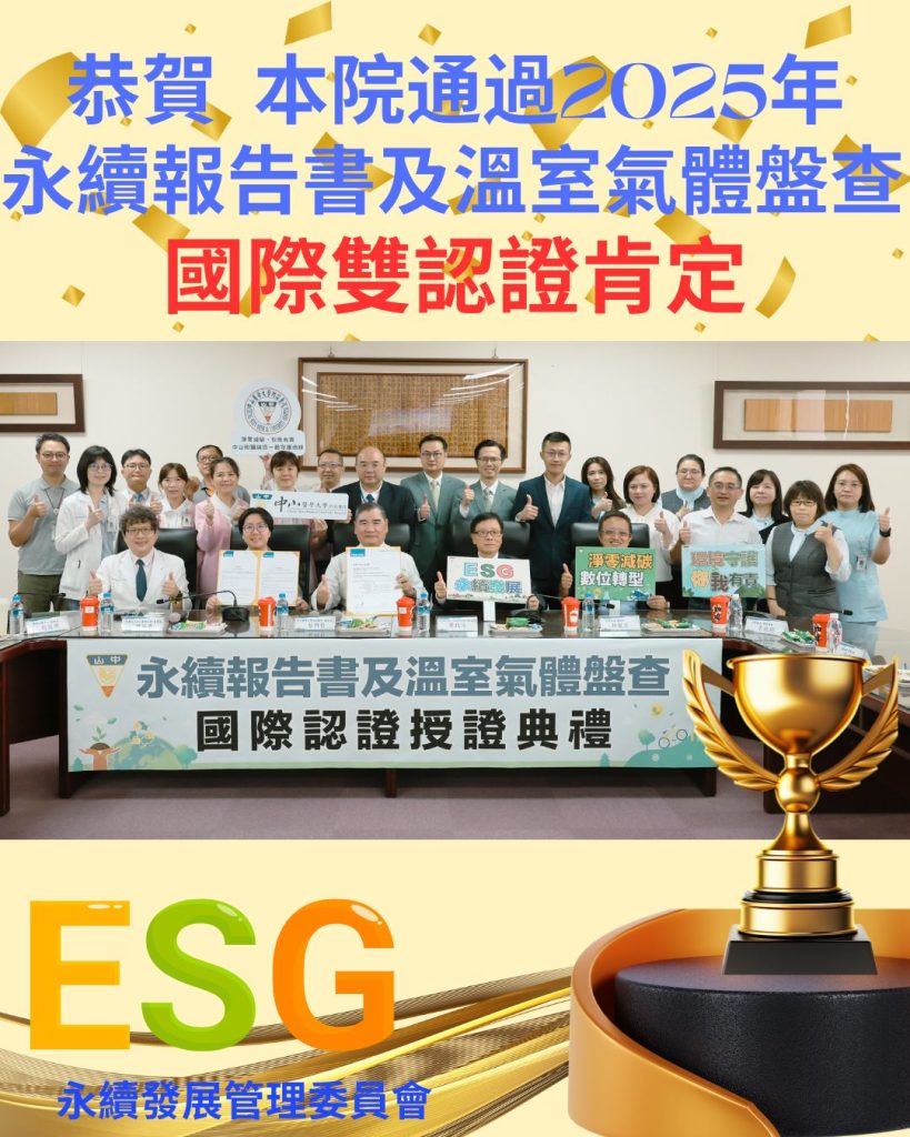 Through these certifications, we continuously strengthen our foundation for sustainable governance, advancing toward the dual goals of healthcare excellence and environmental sustainability.