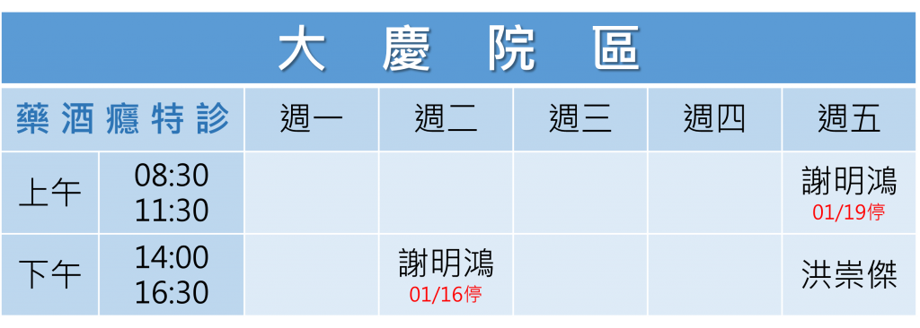 此特診為二級毒品、酒精成癮之門診,並非美沙冬特診唷!!!