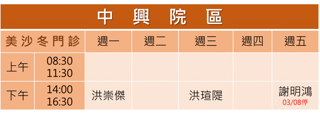113/03月份美沙冬門診表_中興院區 門診表 2024-02-272024-05-16 N476 此門診位置在中興院區 ? (請點我)院址:402 台中市南區復興路二段11號總機:04-22621652 #70102