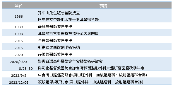 The Otolaryngology Department of the CSMU hospital was established in the same year as the hospital, and our department was the very first otolaryngology department in central Taiwan. The department can be divided into 4 subspecialties, which have its own expertise in managing relevant ear, nose and throat diseases. Below are the main features of these subspecialties.