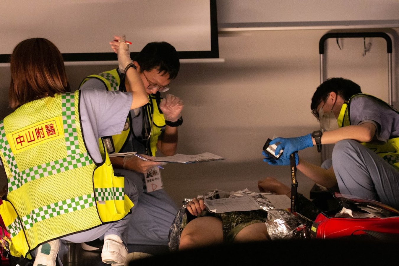 此場跨單位聯合演練動員層級高、整合面向廣,由台中中山附醫舉辦,匯聚台中市警察局、消防局、衛生局,並結合光田綜合醫院、台中市民團協會,以及由地頭蛇團隊帶領10餘位基層診所醫師共同參與。演練過程刻意設計資源斷鏈、場地轉移、低光斷電環境等突發干擾,藉此考驗應變人員的心理素質與臨場決策能力。應變隊伍必須即時調整策略,在高度不確定環境下完成醫療救護與指揮整合。