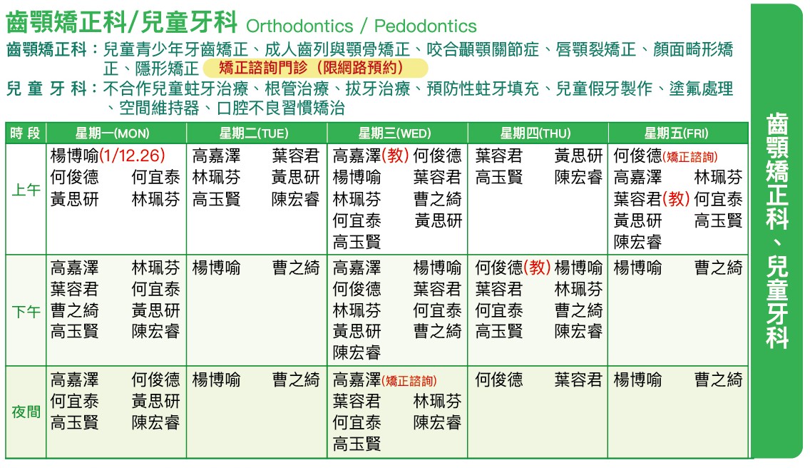 齒顎矯正科、兒童牙科 治項目:兒童青少年牙齒矯正、成人齒列與顎骨矯正、咬合顳顎關節症、唇顎裂矯正、顏面畸 醫師姓名 醫師分機 高嘉澤 醫師 55273 何俊德 醫師 55279 楊博喻 醫師 55251 葉容君 醫師 55250 林珮芬 醫師 55278 周庭蓁 醫師 55271 何宜泰 醫師 55275 黃思研 醫師 55274 曹之綺 醫師 55276